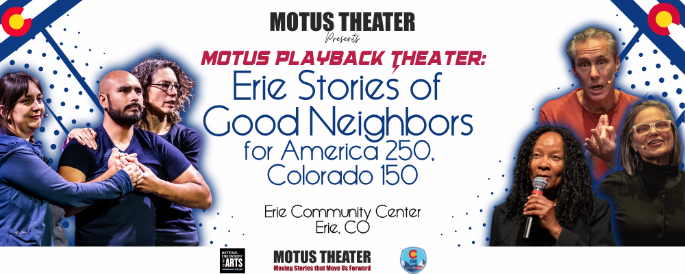 In honor of Colorado’s 150th anniversary, this special Motus Playback performance invites you to share stories that celebrate the extraordinary neighborly spirit that has shaped Erie across generations. Regardless of politics, culture, identity, and religion, nearly all of us carry a story about a neighbor who showed up when it mattered. This evening is an opportunity to remember those moments together.